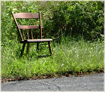An empty chair by the side of the road, among the weeds and the debris of time... The observer of the passing scene is also carried in its flow.